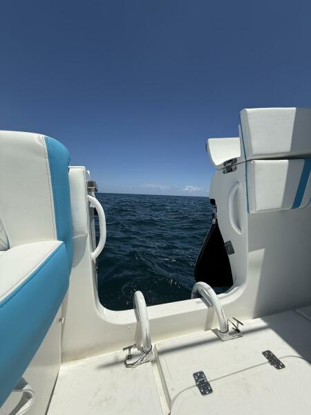 This Midnight Express is loaded with upgrades that matter: fresh high-end upholstery, custom-painted engine cowlings, full Garmin electronics, underwater lighting, and a Fusion Roswell sound system that absolutely bumps. You’ve got everything from a side dive door and rear bench seat to outriggers, triple live wells, and multiple freshwater washdowns. All in a layout that’s equally ready for fishing, entertaining, or heading to the islands.