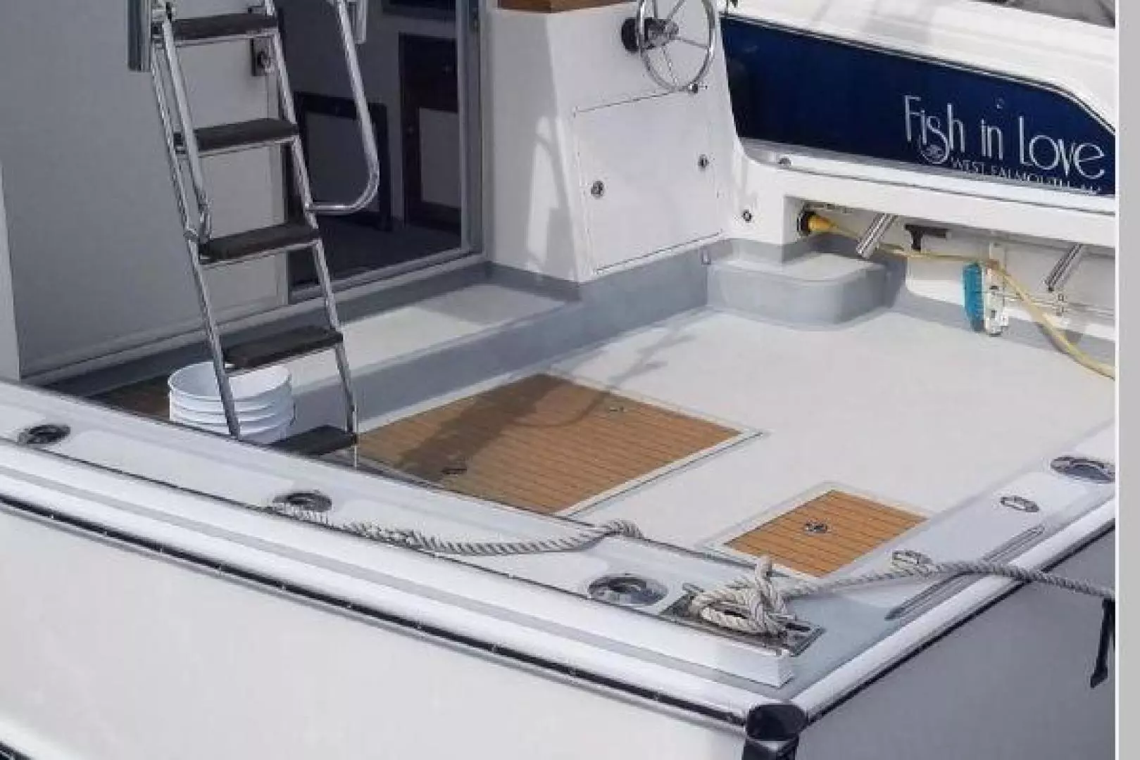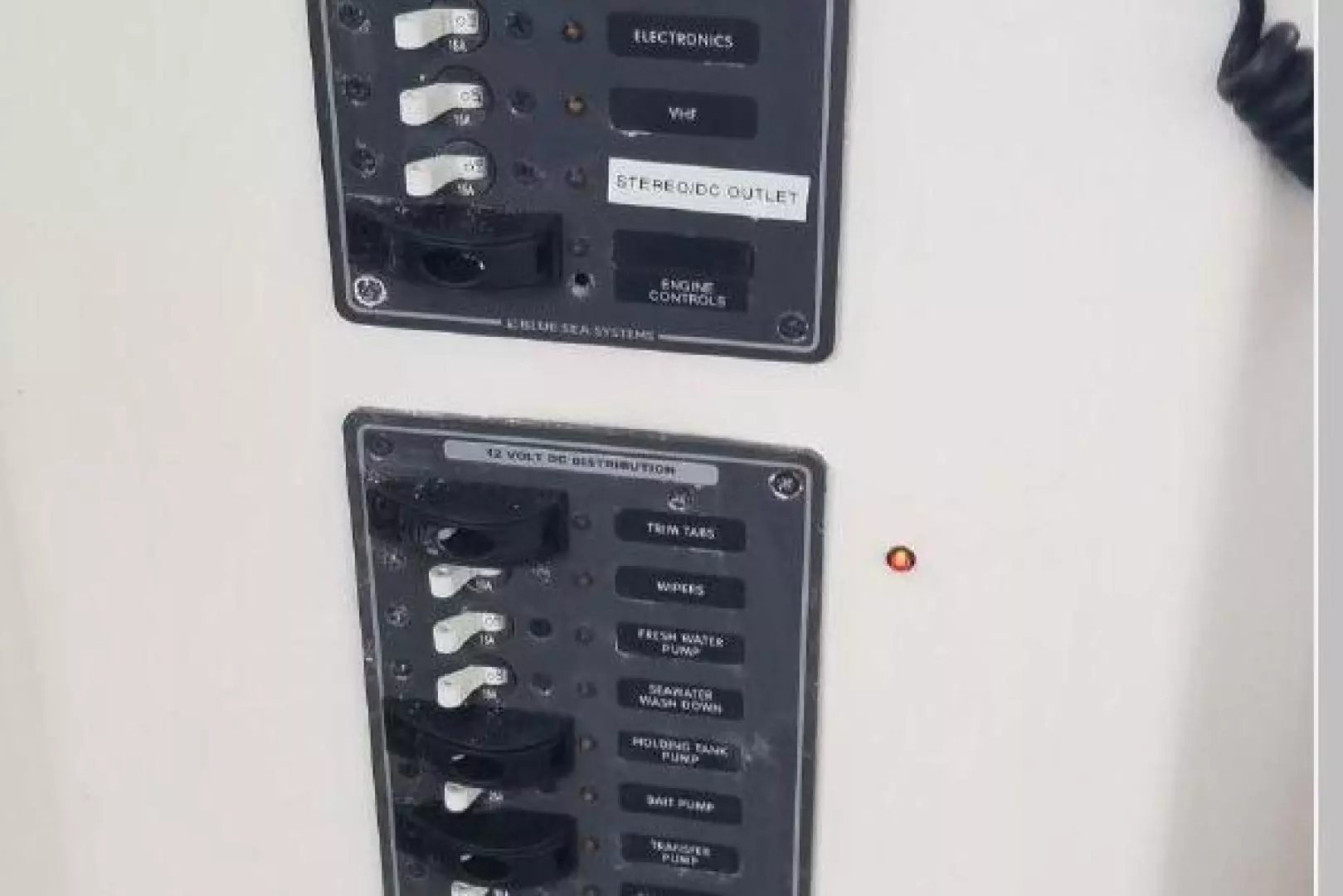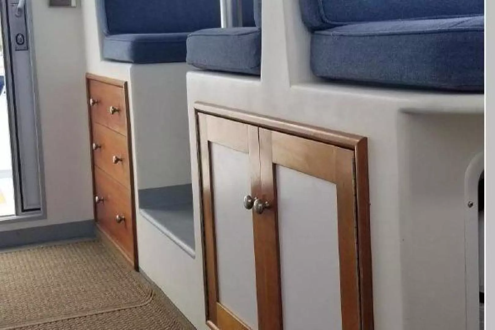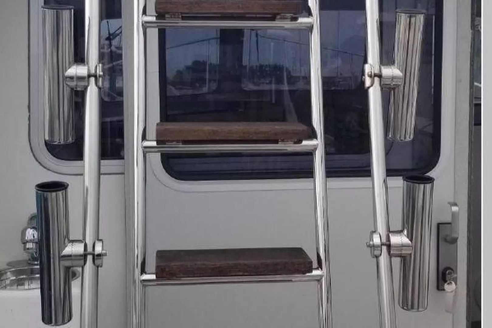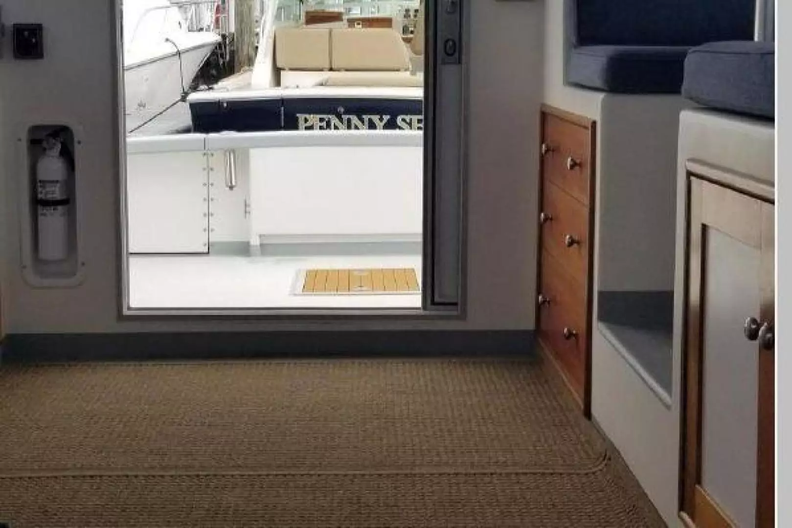 Don't scroll away until you take a look. CUSTOM BUILT for owner, there's not another one like this out there. Very versatile, head way offshore to fight the big game fish or cruise with the Family for weeks or just hangout at your favorite anchorage. Great sea boat to run offshore or go up and down the Eastern Seaboard visiting all your favorite spots. Proven hull that runs well, and sips fuel, average 4.8 gallons per hour running at a good clip. Very large cockpit to fight The Big One or put some chairs out there and hangout with Family & Friends. Also has a helm station, large ice chest in sole, transom door. Flybridge is a great place to hang while under way. Cabin has a large galley, dinette seating, 3 drawer storage. Helm is very easy to see 360 degrees, side door for easy deck access, passenger seat to port. Down below has an enclosed head to starboard, V Berth forward & bunk bed on port that can sleep 3. Family of 5 would be comfortable sleeping onboard, very large storage under bunk and V berth. Call soon, this very clean and professionally maintained by MacDougalls' Marine since new should not last.