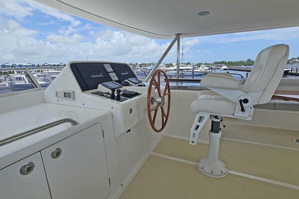 - Stidd helm seat at pilothouse with deluxe chrome base and Ultra leather upholstery