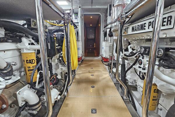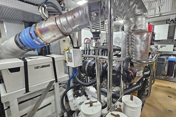 - Twin Caterpillar C-12 Acert (700 bhp) diesel engines with ZF transmissions and electronic instruments for dual stations (port 2,821 hours, starboard 2,834 hours)