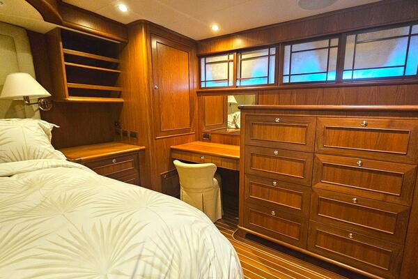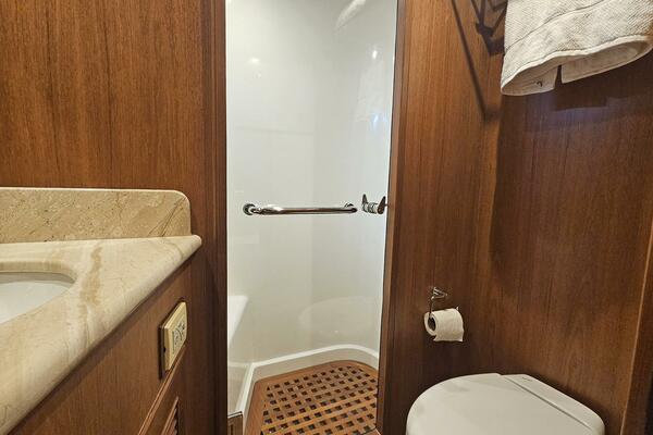 Unlike most 70’ and 72’ Outer Reef models, which feature three staterooms forward and a single aft crew or guest cabin with head and shower, UNBRIDLED offers a rare and highly desirable layout: two full cabins aft with a shared head and shower, ideal for accommodating additional family or crew in comfort and privacy.
