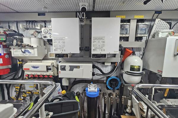 - Twin Northern Lights 20kw generators with sound shields (port 1,487 hours, starboard 1,715 hours)