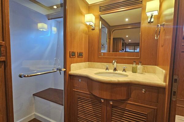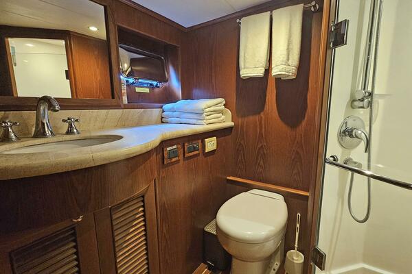 - Three staterooms, each with en-suite head and shower and a two-cabin crew quarters with shared head and shower aft