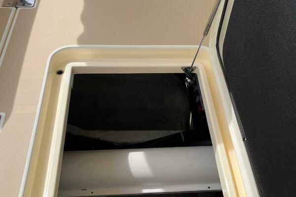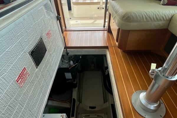 - Large engine room hatch in main salon with compression latch