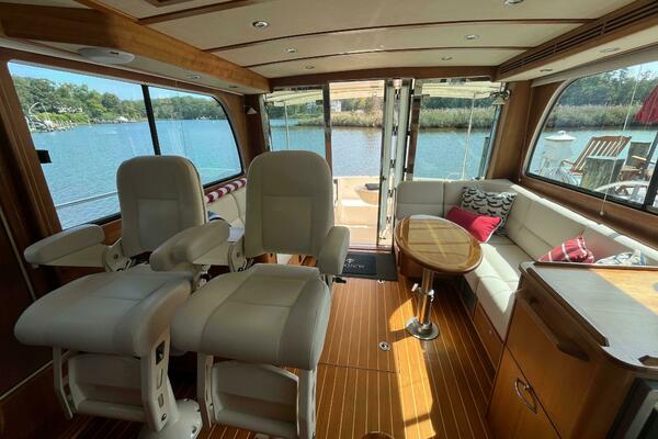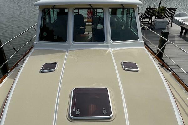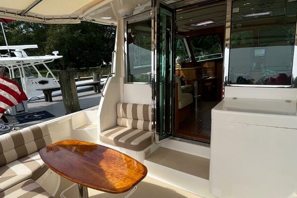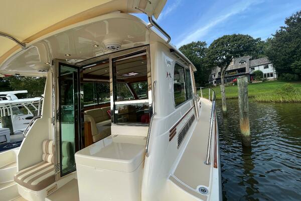 - Hinged access door to side deck at helm