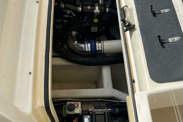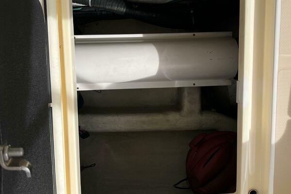 - Bottle storage locker below helm seats