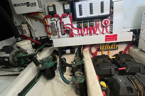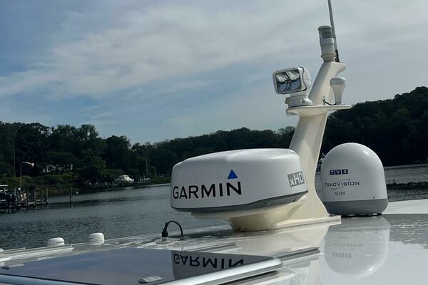 - (2) New 15" Garmin multifunction electronics displays with 4 Kw open array, GPS, Black Box for depth/sounder and radio. KVH M1 Sat Dome with 2 receivers and dummy dome, New Fusion stereo with separate zone control