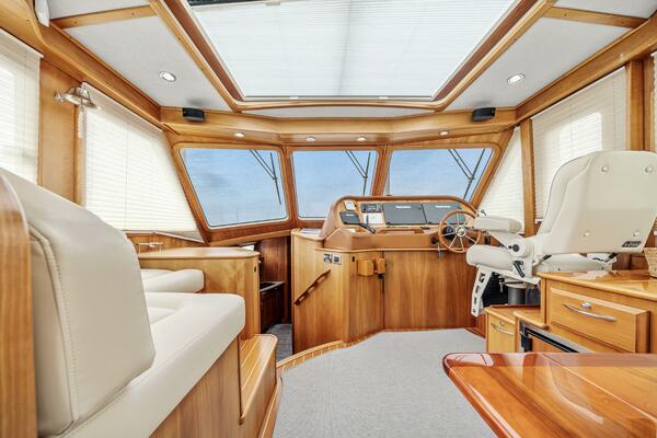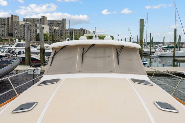 The 48's traditional exterior profile belies the contemporary performances of her vee-hull. She cruises at 25 knots and at wide open throttle she'll attain more than 30 knots. With the Zeus pod drive system, turns at speed are as exciting as they are in a fine sports car but perhaps even more exhilarating is the quiet that one experiences at cruise speeds. Less than 75 dba makes her one of the quietest motor yachts available today. The joystick and Skyhook operations give every Captain the confidence to dock her in the most difficult of circumstances.