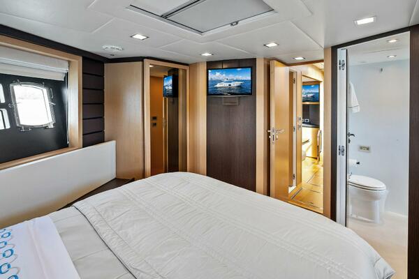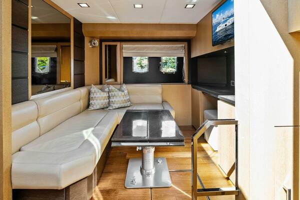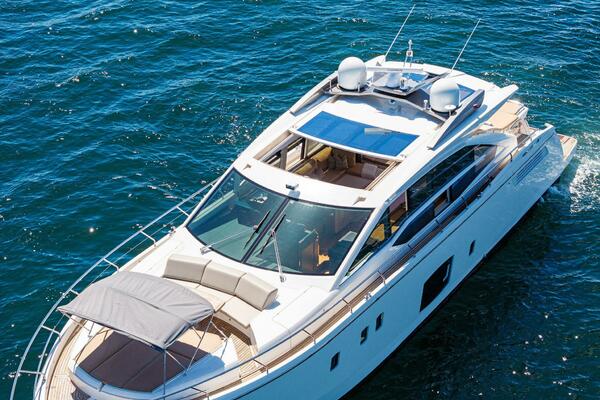 We proudly present this highly customized 64' Absolute! She was built by an extremely knowledge able and detail-oriented owner who has made very well-planned upgrades to the vessel for cruising pleasure. You will not find a more user friendly, accessible boat. The 64' boasts a fantastic ride and 360-degree visibility at the helm. She is laid out with upper and lower salons featuring 2 staterooms en suite, with the traditional 3rd stateroom having a customized open layout equipped with an office and Sofa that could be used as an additional sleeping area also en suite. The lower level features an addition of finished wood flooring. IPS drives bring fuel efficiency and can be operated by a joystick at helm. A perfect yacht for family enjoyment and extended cruising. She recently had a bottom paint job, and both IPS transmissions were fully rebuilt.