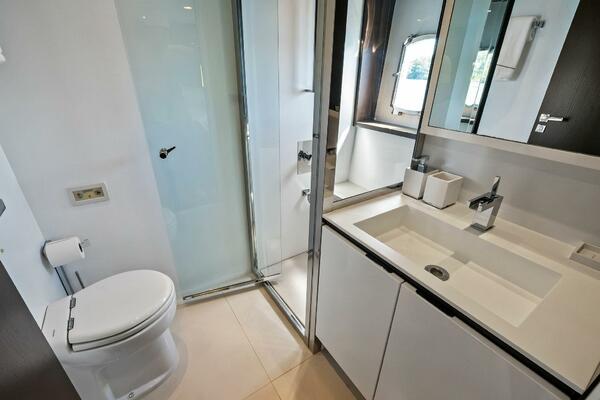 - Shower w/ Glass Door, Seat & Polished SS Hardware