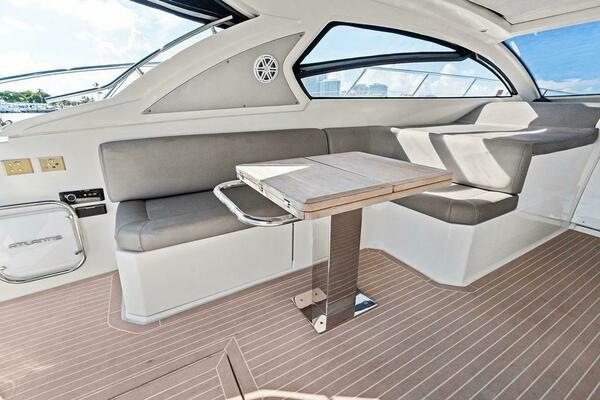 This 2013 Azimut Atlantis 48 delivers the perfect balance of Italian styling, sporty performance, and luxurious comfort. Designed in collaboration with Neo Design, the Atlantis 48 features a sleek profile, powerful twin Cummins QSC 600 hp engines, and joystick docking with bow and stern thrusters for effortless maneuvering. Cruising at 30 knots and topping out near 35, she’s built for speed, agility, and unforgettable days on the water.