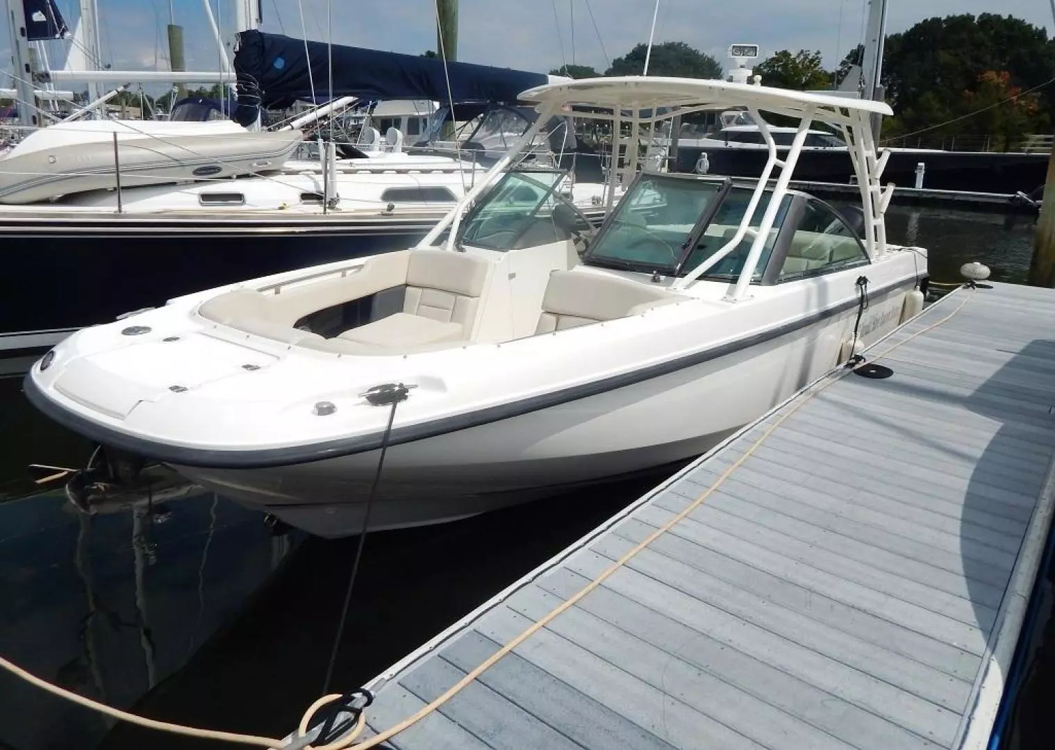 Those who love to ski or wakeboard will have the time of their lives behind the 270 Vantage. Besides brawny power, the boat offers an optional watersports tower with wakeboard racks and tow bit that will take you to new heights; a Fusion stereo system lets you rock out no matter how far offshore you go. When the day is done, store your gear or rods in the lockable in-floor ski/rod storage compartment.