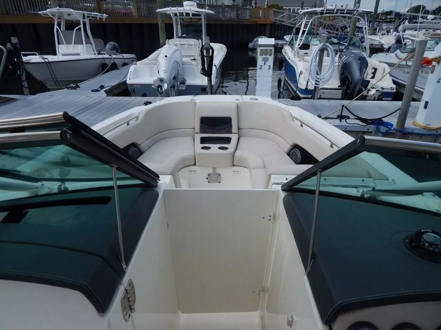 - Console storage with stainless steel latch with storage system for life jackets, dock lines, fenders