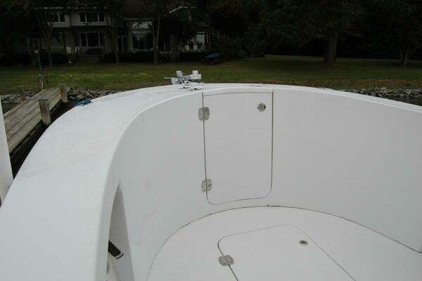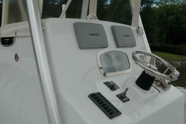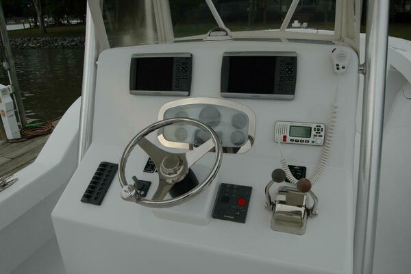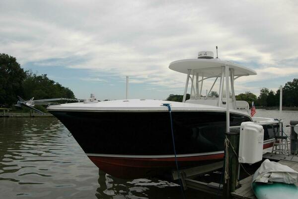 Outfitted with a single Yanmar 315hp. diesel (with only 133 hours at the time of listing) and a SidePower bow thruster, head compartment forward, full hard T-top, a large console, and dual Garmin MFDs, she offers a number of features normally reserved for larger vessels.