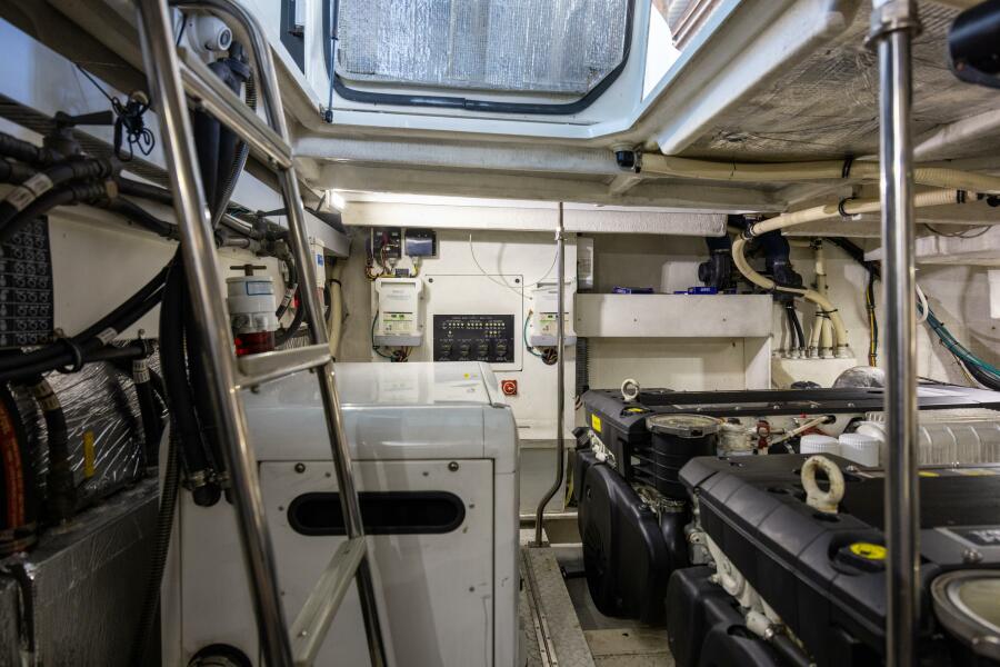 The master stateroom is full beam 15’6” and also has a walk-around queen-sized island bed with foam mattress.
