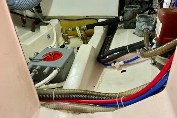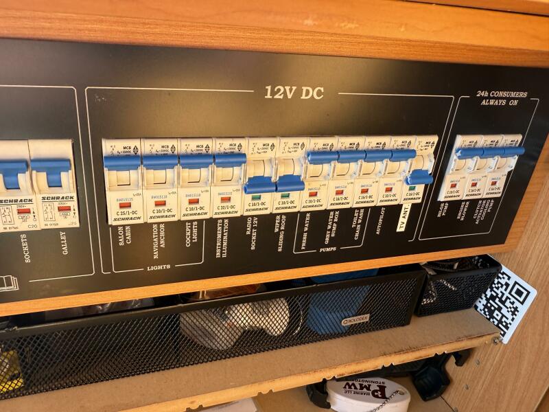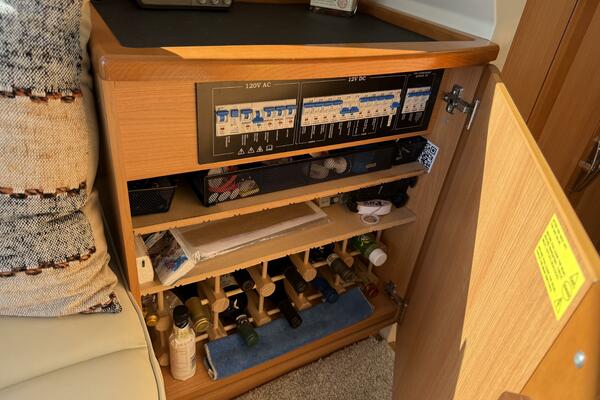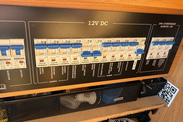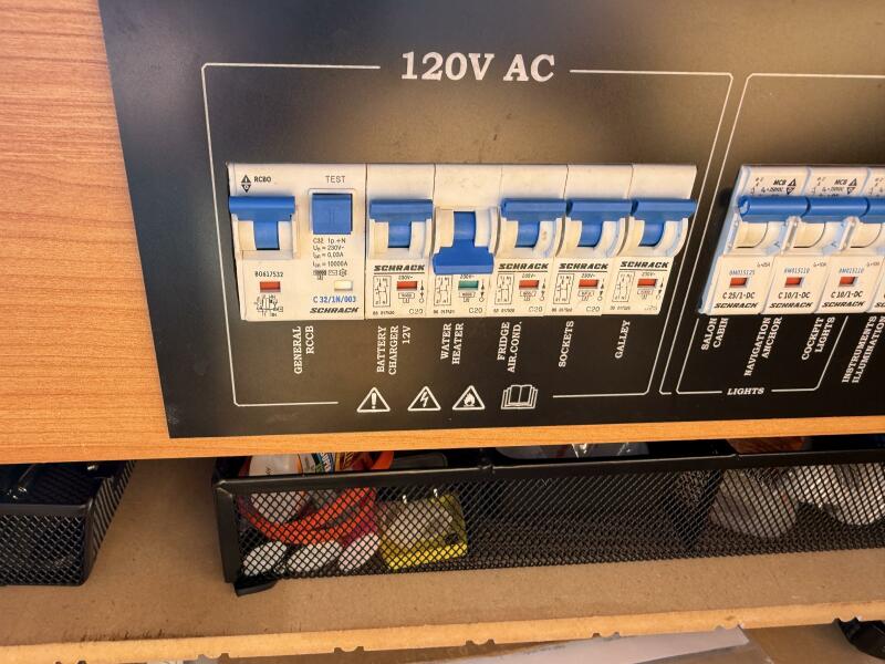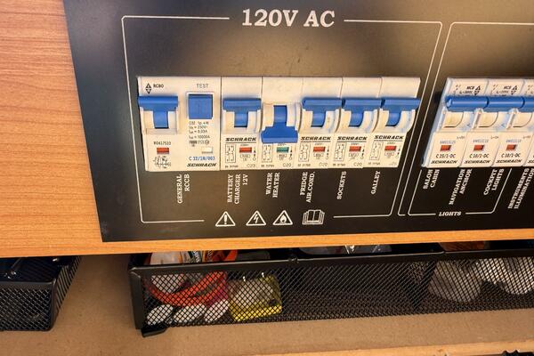 A prior owner replaced the 48 Volt lithium battery bank with a 48 Volt lead acid battery bank for safety and because they were only using the boat in diesel mode. The current owner has continued to operate the boat this way. A new Victron solar regulator installed Oct 2025 to charge the 48 Volt system, which is then run through an inverter/converter to power the 12 Volt systems. The 48 Volt battery bank may also be charged from the electric motor serving as a generator when the diesel is running. A new owner would need to install a new Lithium battery bank to operate the electric drive for a practical amount of time.