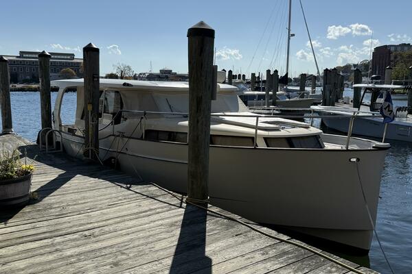 Landfall is likely the cleanest pre-owned Greenline 33 on the market today. This 3rd-owner vessel has been meticulously cared for with recent upgrades from the current owner including: New laminate flooring in salon; New Blinds in Salon; and, a Gorgeously redecorated head compartment. Landfall is a very-well equipped example including Raymarine electronics with C120 MFD, radar, autopilot, depth & speed; Bow thruster; Air conditioning with reverse cycle heat; Full size refrigerator/freezer; Microwave; Remote operated swim platform, Plus more! This boat is a must see for any cruising couple interested in comfort, livability, and low cost operation due to the efficiency. This would be an excellent model to do the Great Loop or any of the other canal systems due to its size, beam, cruising speeds, and safe & easy access fully around the boat to handle lines & fenders.