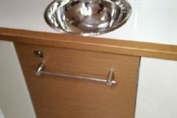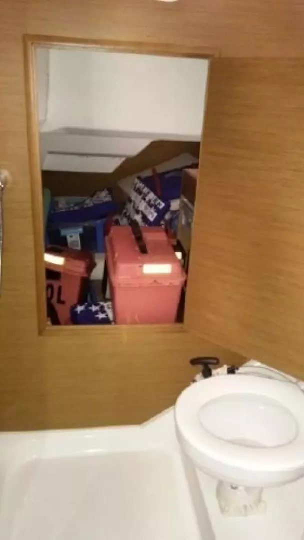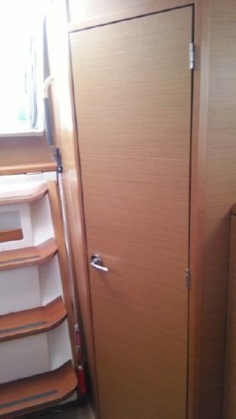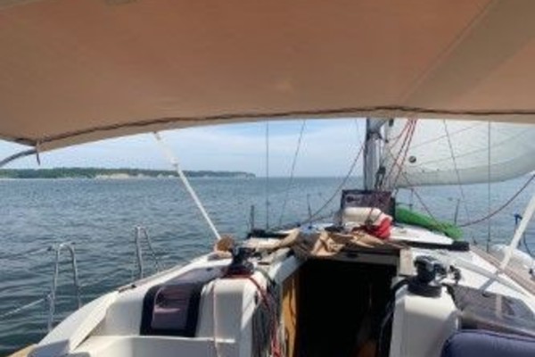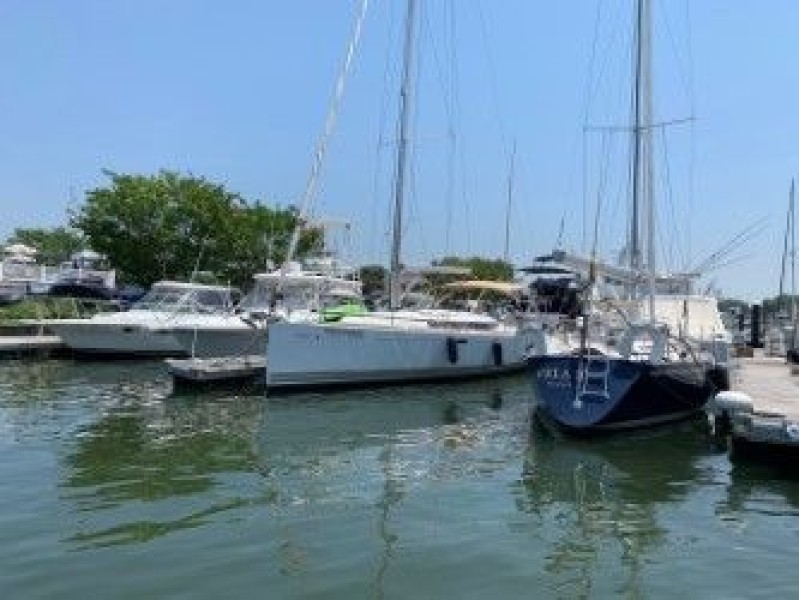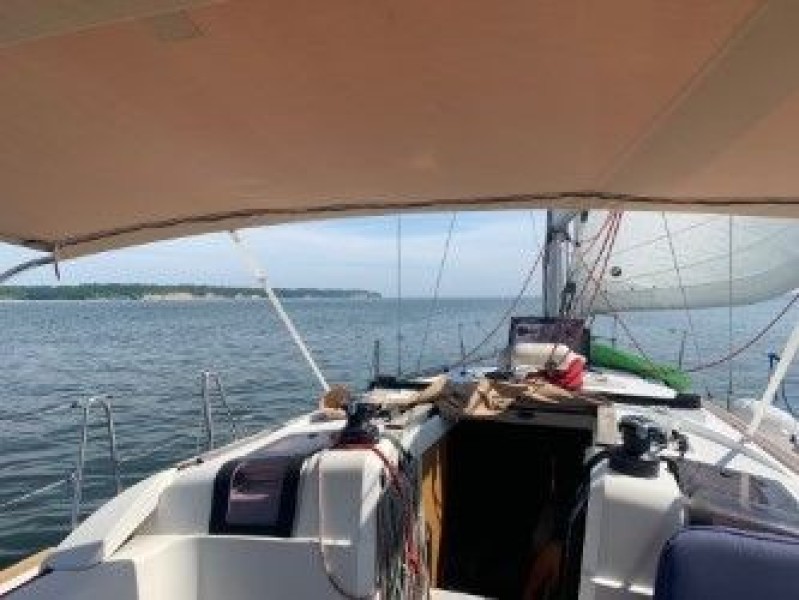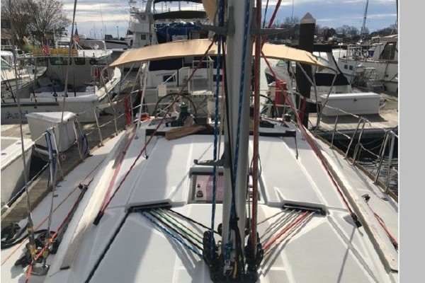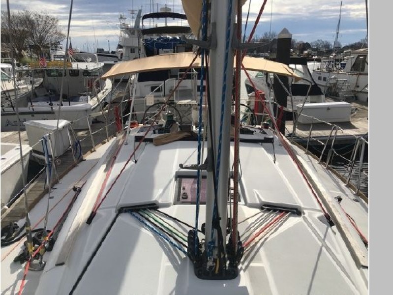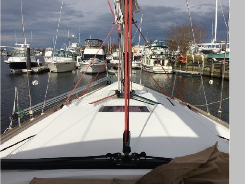 Entry thru a wide comfortable companionway and down 4 steps, you are welcomed by a rich and spacious salon. Immediately to port, you have access to a large head with a vanity and shower partition. Adjacent to starboard is a "L" shaped galley, great for working underway or on the hook. Starboard and aft lends access to an "inline" double berth stateroom with ample storage and hanging locker. Moving forward the dinette table lies mid-line with dinette seating to starboard. The table fold down and can convert to another double berth. The drop leaf folds up for a large dinner party, allowing seating from the long bench seat along the port side. The aft portion of the port settee gives way to the Nav Station sitting. "Three Bears" offers a very large forward cabin with full length shelves, a three compartment stacked hutch and double wide hanging locker. Gasketed doors and an overhead hatch with combination shade and screen show attention to details often overlooked. Last but not least is the expansive storage garage found behind the shower. this is the place for everything you wish to have aboard but not look at. Perfect for storing cockpit cushions, spare sails, spinnaker gear, spare parts and safety gear.