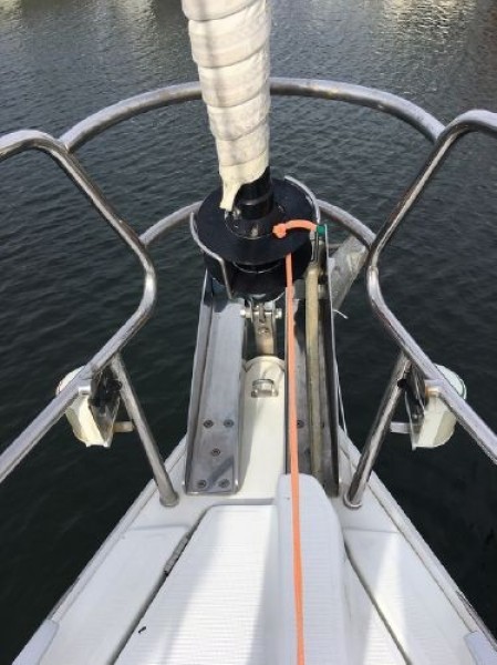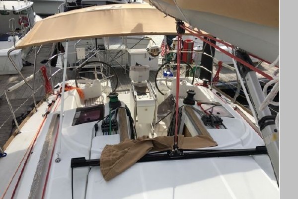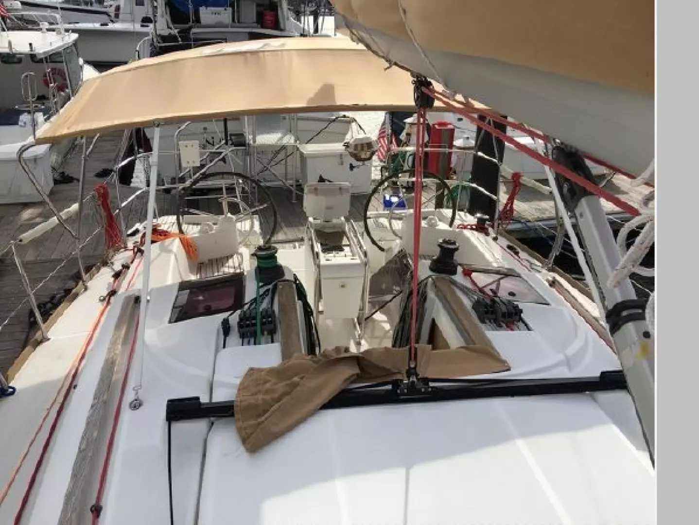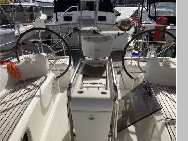 Her deck layout is very comfortable with easy access to the fore deck due to plenty of room on deck. Her cockpit is large and offers a centerline pedestal for electronics or I-pads and has a fixed centerline table with drop leaves so when at anchor one can enjoy dining in the cockpit.