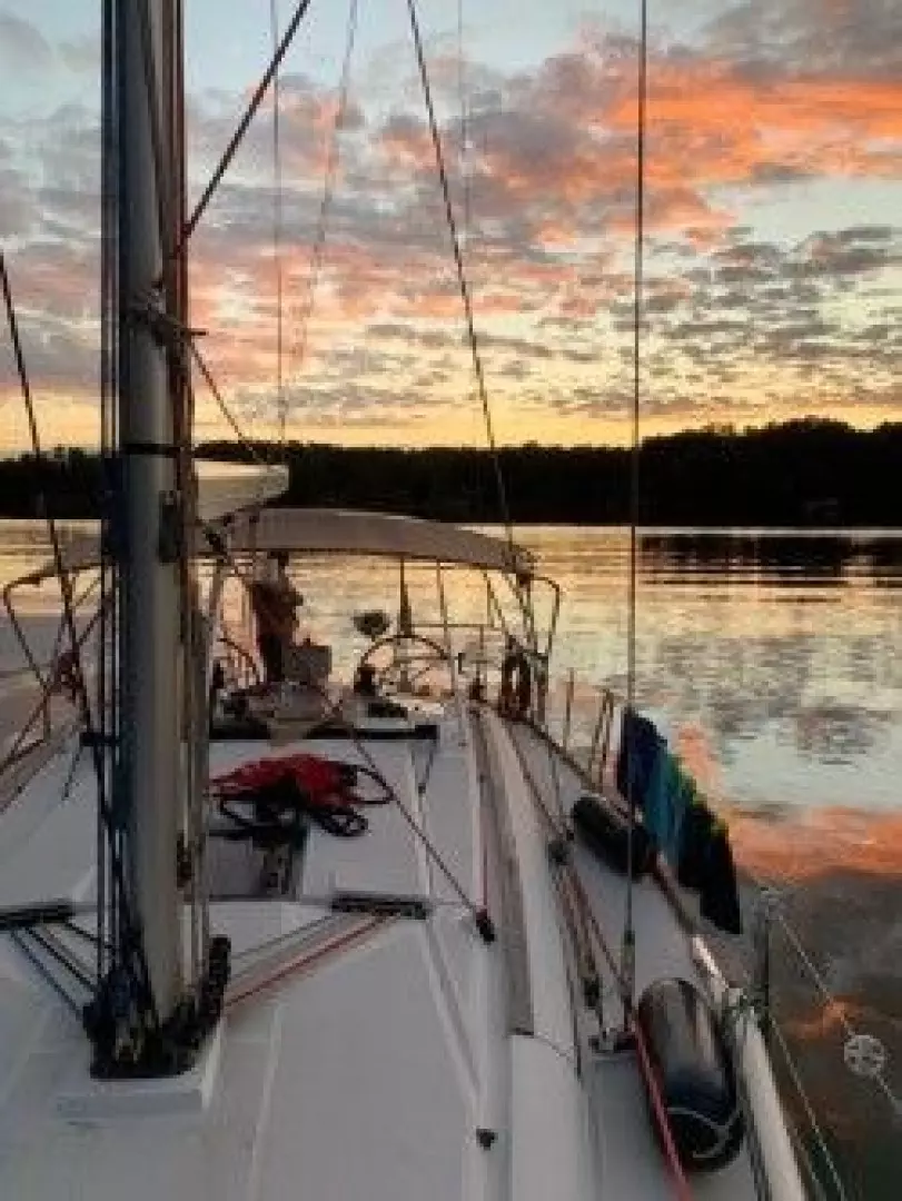 My husband (of 30 years) and I live in Easton, Maryland. My husband is the rigging supervisor at Safe Harbor Oxford Boatyard and our daughter, having graduated from Washington College in 2020, is now teaching English as well as coaching the sailing team at the Gunston School in Centreville, Md. She has recently come on board as the Summer Sailing Director with the Tred Avon Yacht Club.