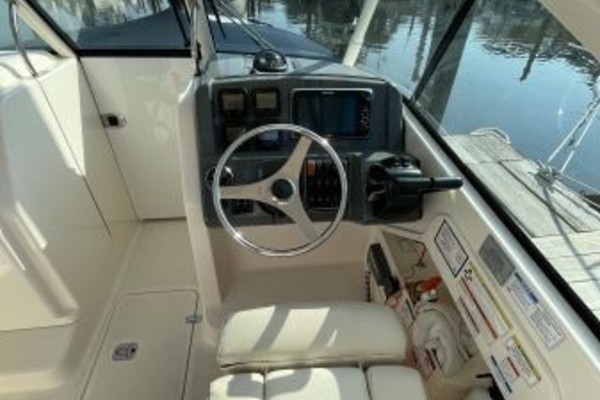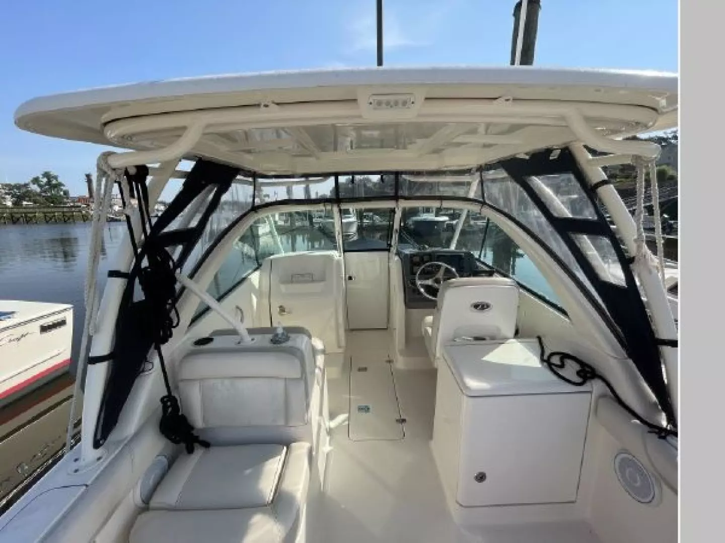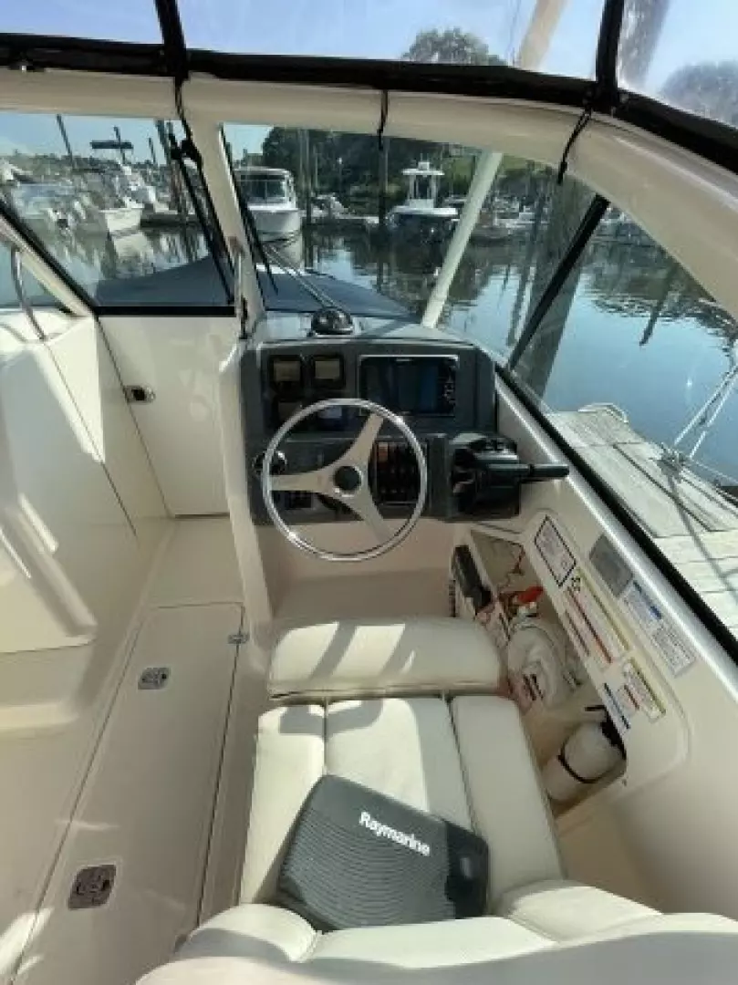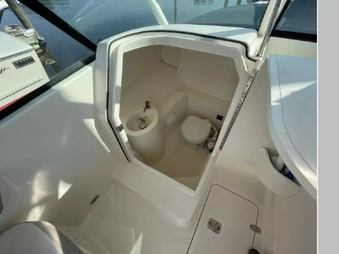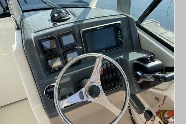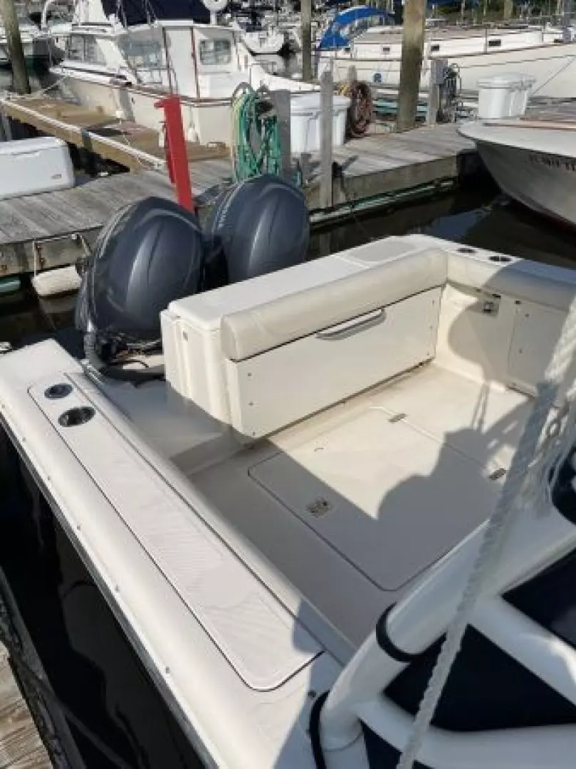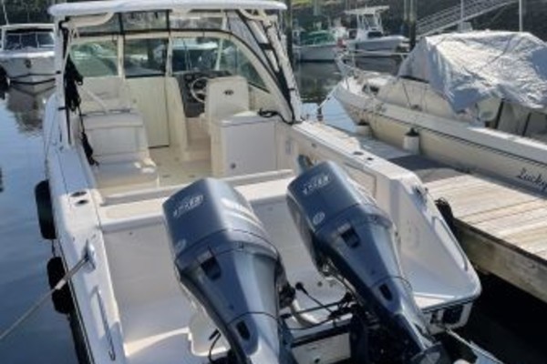 The Pursuit DC 265 Dual Console has become a legend for a combination of family fun on the water as well as a fishing machine. Built with vinylester resins this hand laid fiberglass hull is built with no wood in its construction has a 21-degree deadrise design which translates to a solid platform to handle all sea conditions. Its sharp lines and aggressive forward stance and flare keep things dry. Equipped with a pair of 150 HP Yamaha outboards, a nice complement of marine electronics and a tandem axle aluminum frame bunk boat trailer. Presently located on the Branford River, Branford, CT