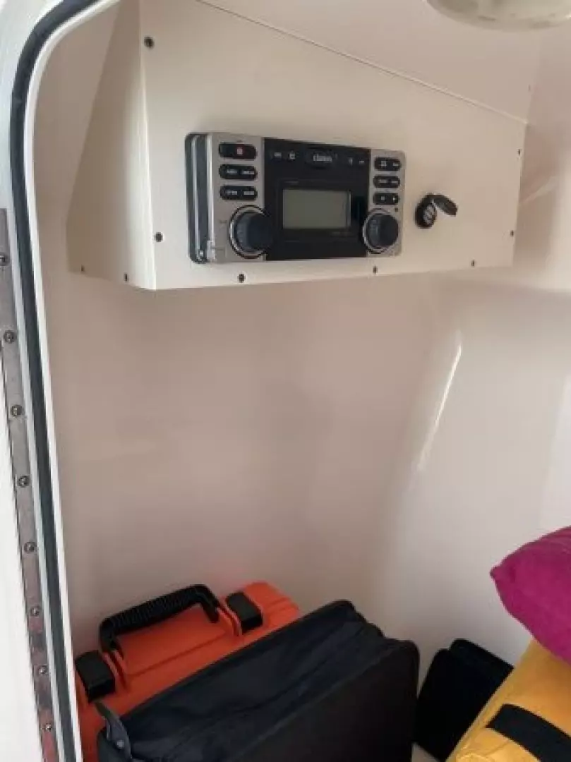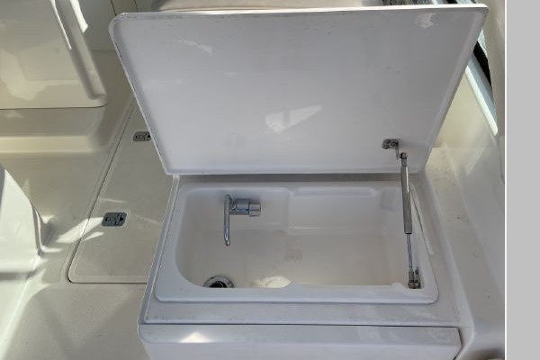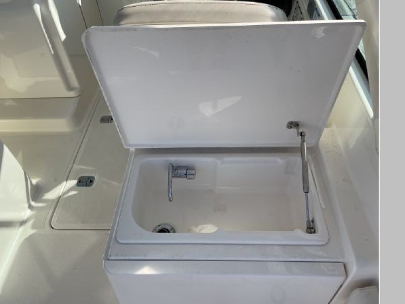 - Fish box in transom 31 gallon insulated fiberglass with drain