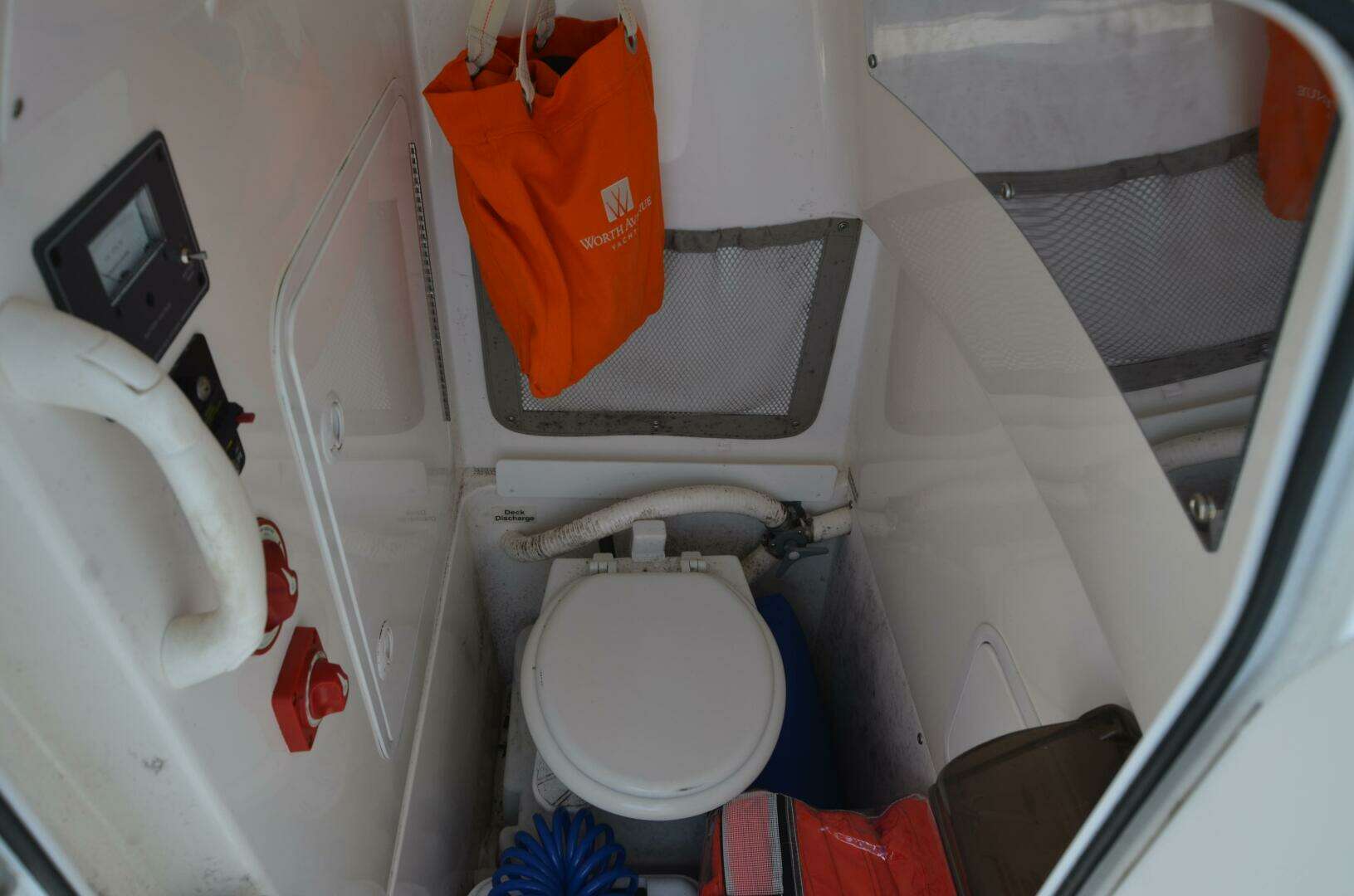 - Fiberglass-Linered Stand-Up Head Compartment w/ Marine Toilet