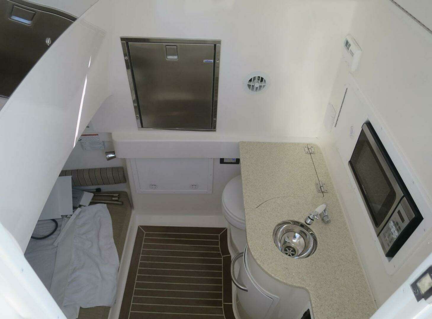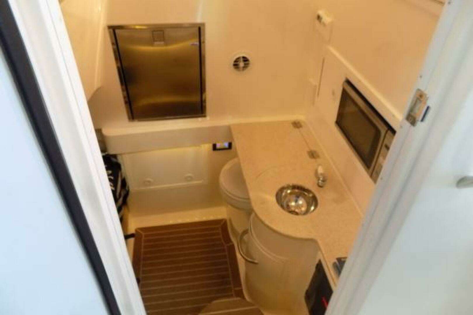 This 2013 Regulator 34SS "WIN PER DAY" is a solid, powerful center console fisherman well suited for coastal pleasure day trips & near shore fishing. Pushing the envelope in sheer size and innovation, the Regulator 34SS incorporates features engineered and built for the most serious fishermen, featuring expansive wrap-around forward seating plus second home accommodations including a compact galley, sleeping berth and head. This vessel has just been fully waxed and detailed and looks brand new as it did fresh out of the manufacturer. This 2013 Regulator 34SS is one of the very few with a SK3 SEA KEEPER, Joystick controls, bow thruster. Backed by the superb power of Yamaha 350 V-8s that gives this Regulator 34SS it’s legendary ride.