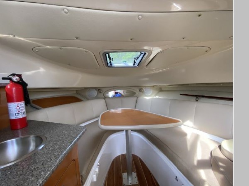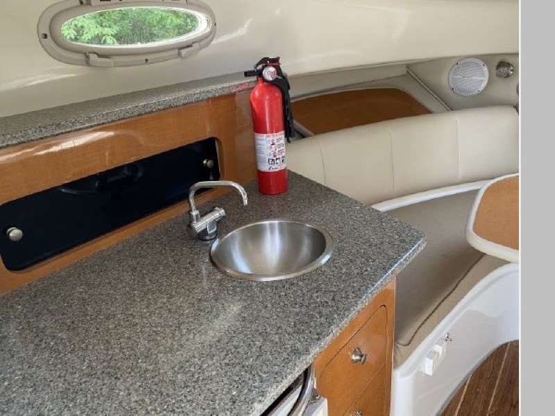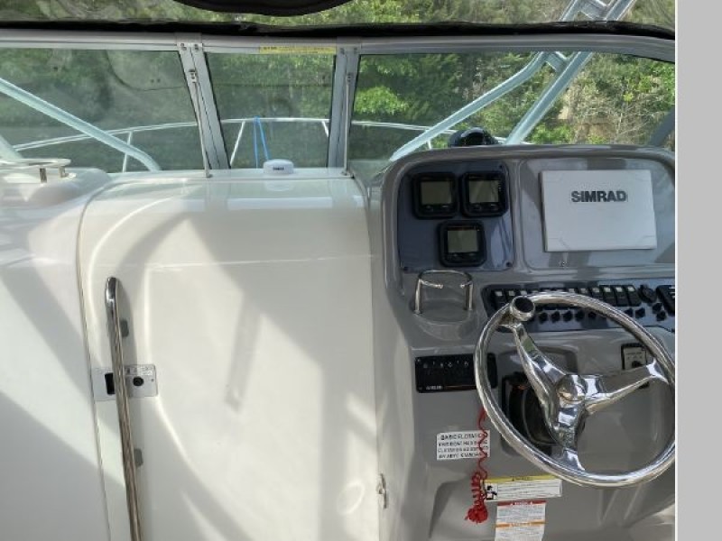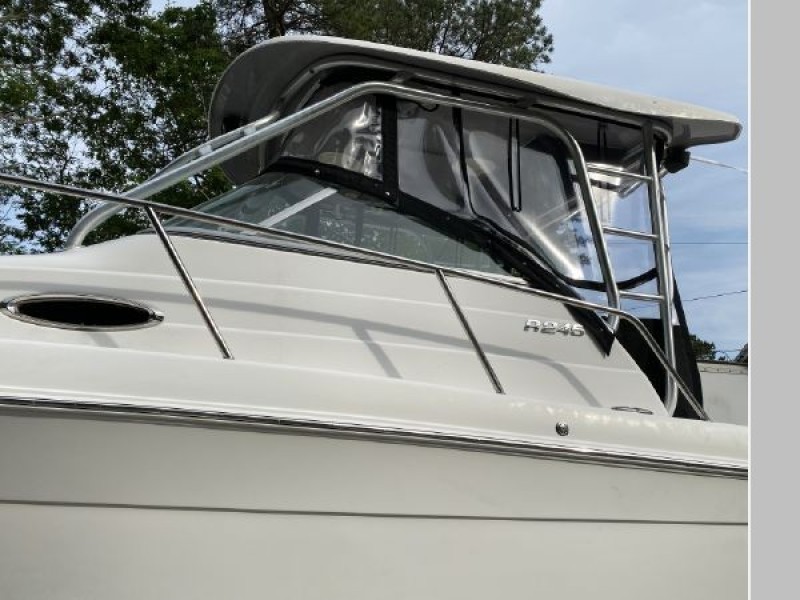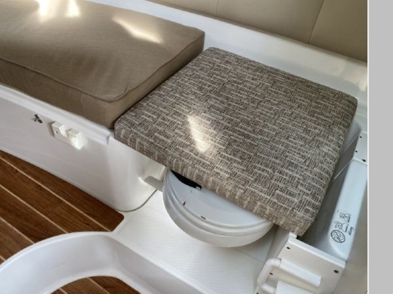 Featuring many of the extras found on bigger walkarounds, the R245 is a Robalo through and through. As a fishing machine, the R245 has six horizontal tubed rod holders, Plano drawer tackle storage, a cast bronze sea strainer and a best in-class livewell. Compared with leading rivals, the R245 has up to six more inches of cockpit freeboard, a four inch wider cabin entryway and the in-floor locker is triple the size of its leading rivals. In the cabin, the dinette converts to a full-sized V-berth for two. Standard teak and holly flooring is easy to maintain and creates a nautical flare. A color matched fiberglass headliner creates a clean look. A large screened hatch and opening port lights provide a cooling breeze. The cabin galley is equipped with maple cabinetry, a solid surface countertop and a stainless steel sink. A cooler rounds out the interior appointments and provides everything you need for a great day or overnight on the water. A standard porta-potty is positioned under the seat cushion.