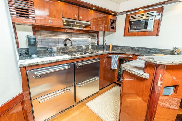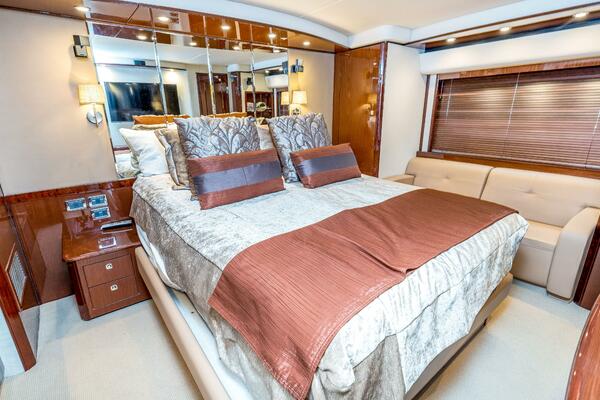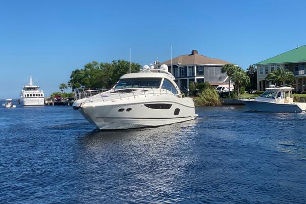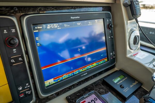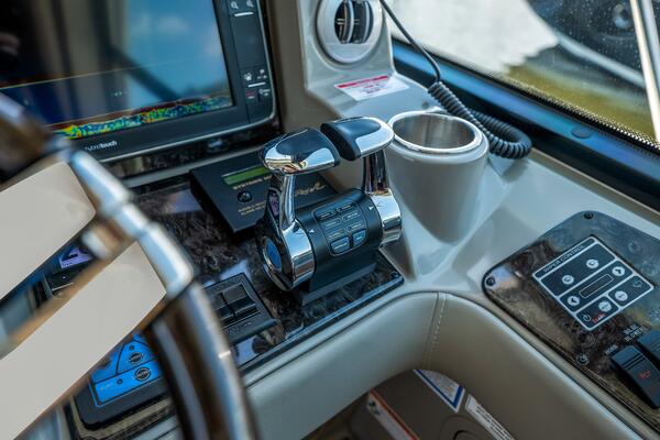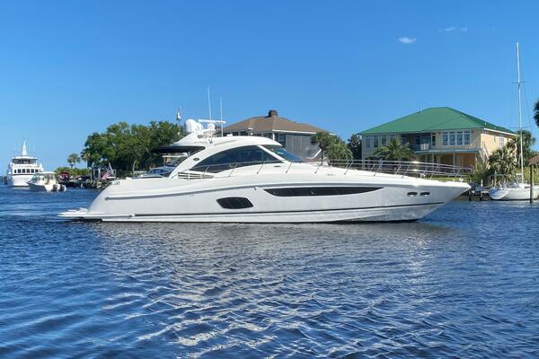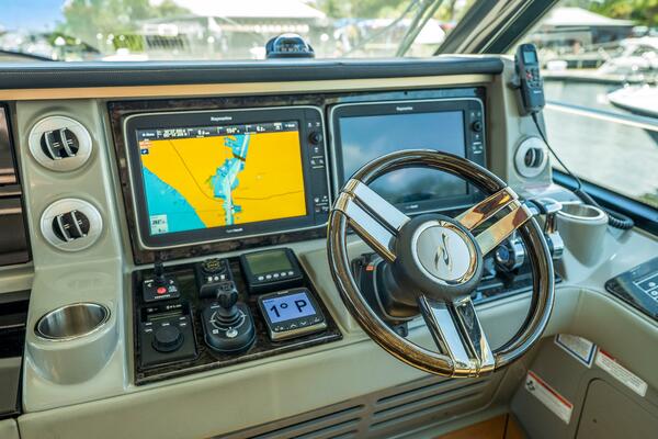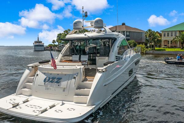 The flagship of our fleet is crafted from the finest materials and designed to transport owners to a new level of yachting luxury. Powered by twin MAN diesel inboards, she delivers an exceptional cruising speed and features the latest marine electronics. "OZZ" is a one of a kind 610 Sundancer, that has lived in fresh water majority of her life. She shows exceptional and is a turn key boat. She has many extras such as Dockmate remote control system, ZF joystick control, hydraulic bow thruster, spare props, custom canvas throughout the boat, and a FLIR Night Vision camera.
