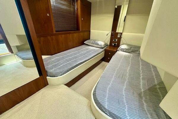 The master stateroom is usually located amidships to maximize space and comfort, featuring a double bed and an en-suite bathroom. This cabin often includes large windows to allow for natural light. The VIP cabin is commonly found forward and also offers a double bed and en-suite or shared bathroom access. A third cabin with twin beds provides additional accommodation flexibility. The styling of the staterooms emphasizes luxury and comfort, incorporating fine materials and finishes to create a relaxing and private atmosphere.
