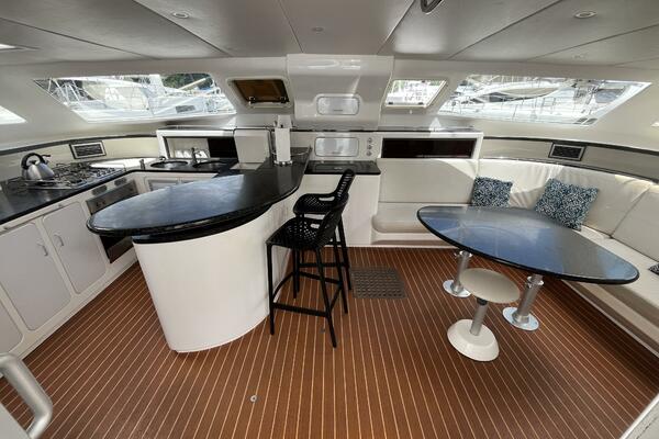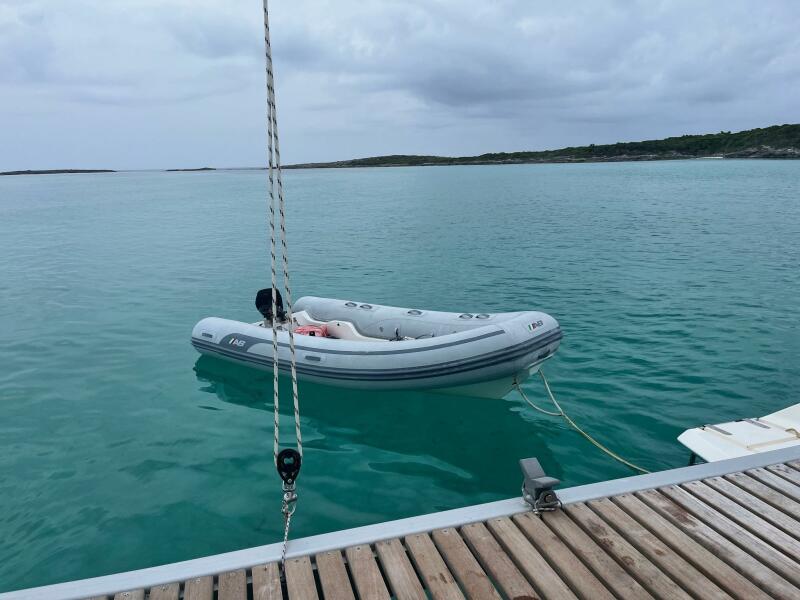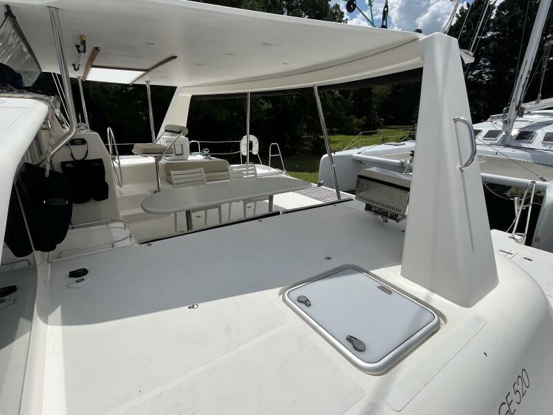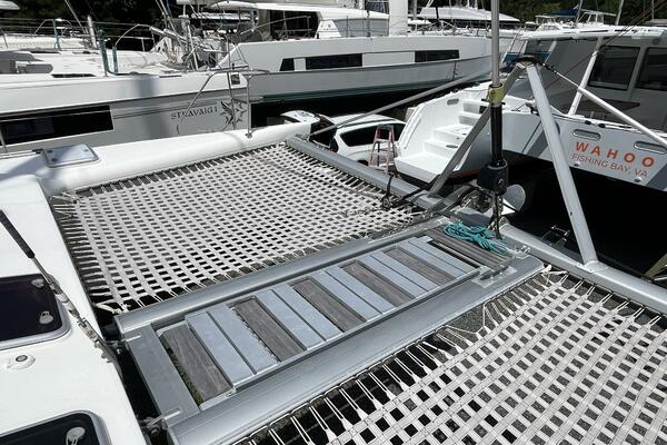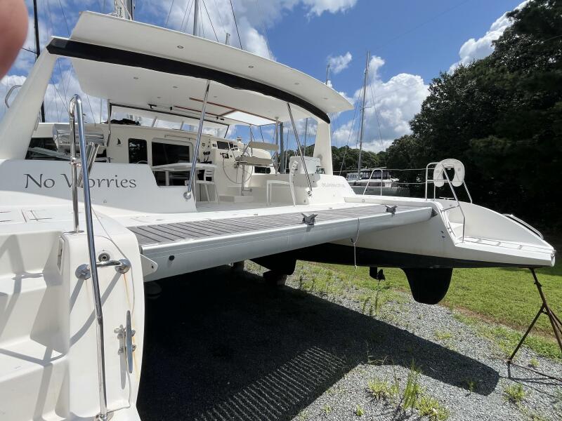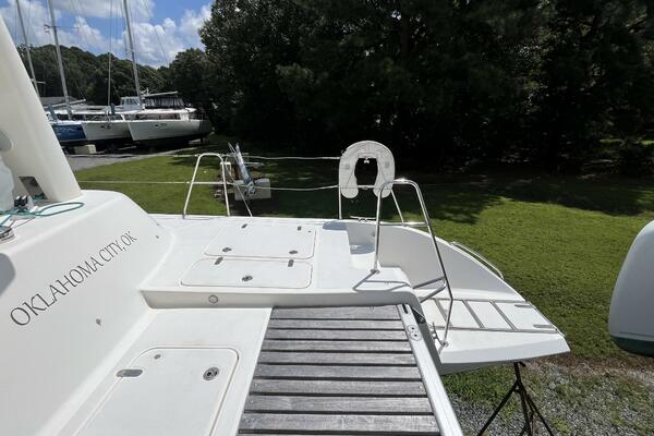- Aft deck extends to teak slatted platform with dinghy attachment points