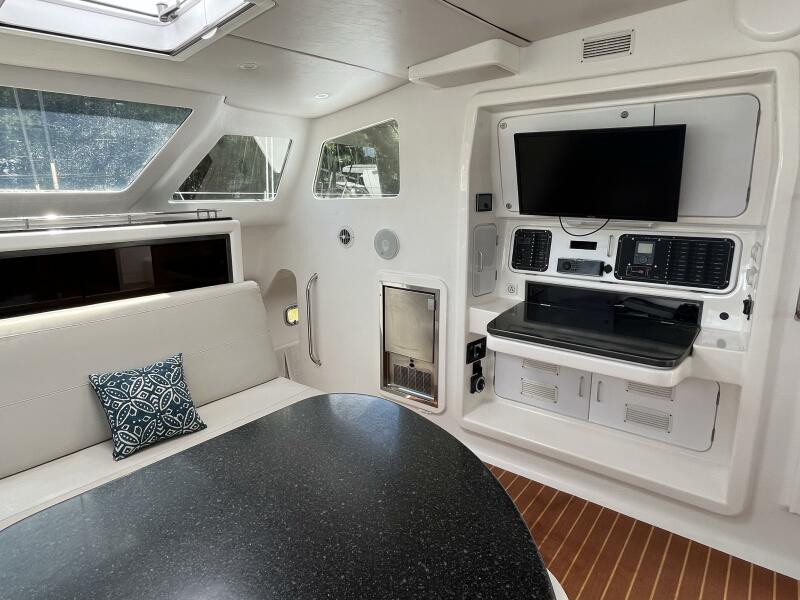 - Nav table, starboard aft bulkhead with: