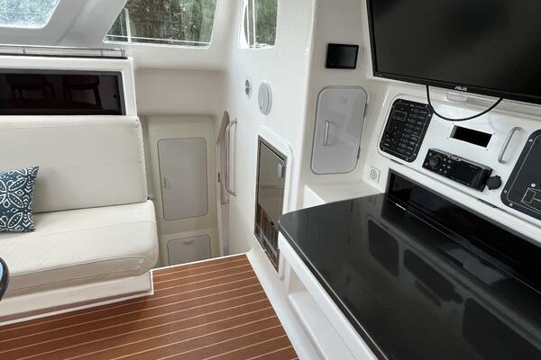 - Hard top bimini over helm & cockpit