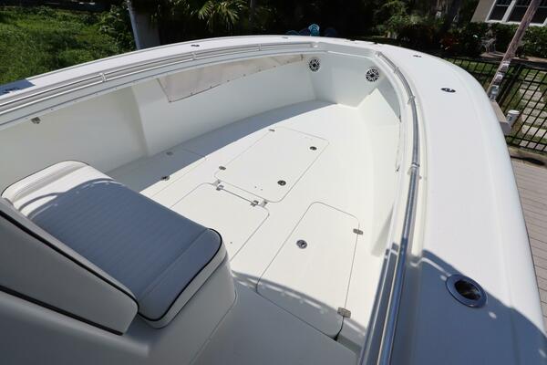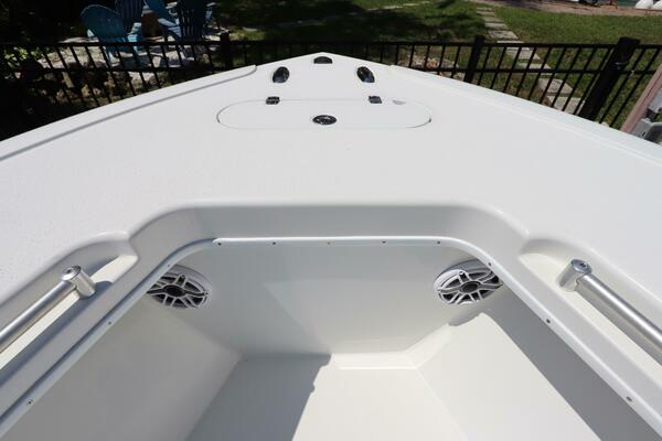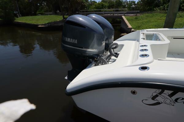 factory direct, owners can choose from an extensive list of add-ons including a coffin box, forward seating, deluxe leaning post, or extra fuel capacity to customize the boat to meet individual needs. A fast ride, twin Yamaha 300s deliver a top speed in the range of 60 mph.