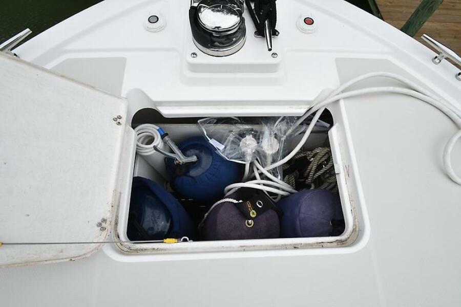 - Has the standard cockpit Shore Power connections, PLUS bow shore power connections also