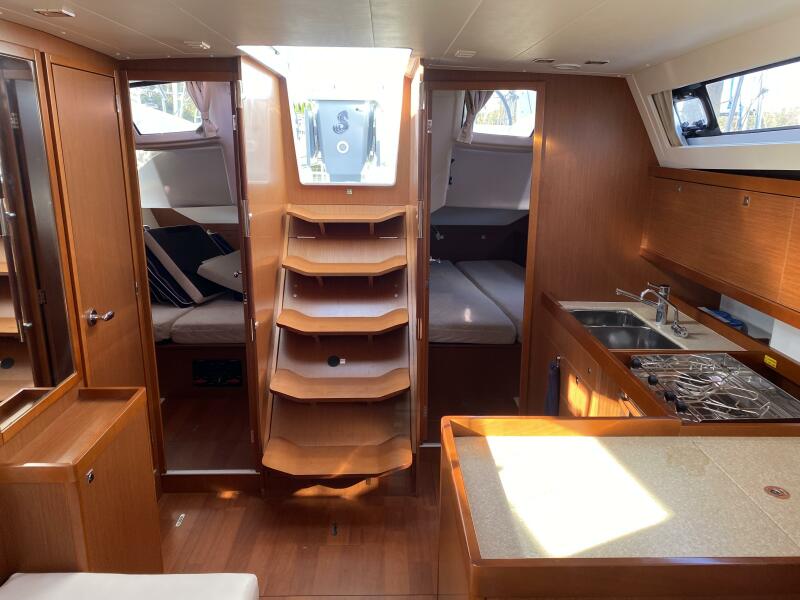 Cloud Nine is a luxurious, very open, and spacious cockpit design that appeals to a wide range of sailors. This Oceanis 41 is set up to allow single-handed operation with bow thruster for easy docking and with all sailing controls easily accessible from the cockpit. Three cabin, one head layout.