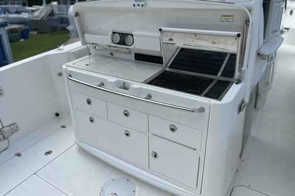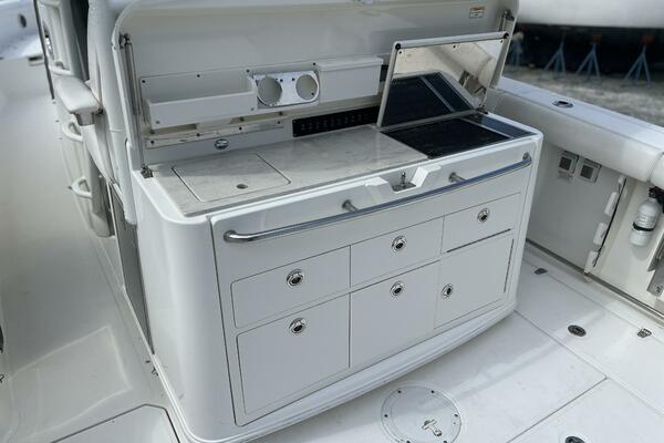 From the award-winning design team behind the critically lauded Outrage series comes the 350 Outrage. This fully equipped offshore fishing boat is engineered with versatile, thoughtful amenities that are equally suited for serious anglers, pleasure boaters and those in need of a yacht tender. A sophisticated, ergonomic helm console resides within easy reach of the multipurpose leaning post, which is fully equipped for deep sea fishing. An optional upper station promotes sport fishing and optimal visibility. When you want to cook up the day's catch, the optional Summer Kitchen features a yacht-quality electric grill. The 350 Outrage also includes an integrated hardtop with interior lighting, storage and rod holders. The Outrage features luxury aft seating with plush backrests and thick cushions for the ultimate in comfortable cruising. Triple Mercury Verado FourStroke outboards deliver unrivaled motor power. For fishing, cruising or hosting a crowd, the 350 Outrage is a cut above.