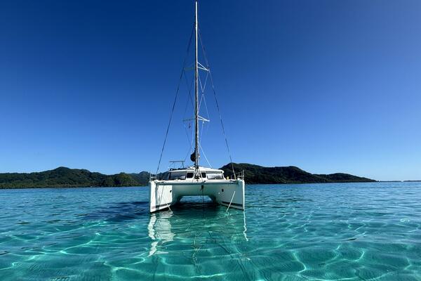Kermotu is a lovingly maintained Fountaine Pajot Hélia 44, privately owned and cherished by her current French owners. Over the past eight years, she has been the setting for an extraordinary voyage — sailing from the Caribbean, through the Panama Canal, across the Pacific to New Caledonia, and returning to French Polynesia, where she now lies in Raiatea.