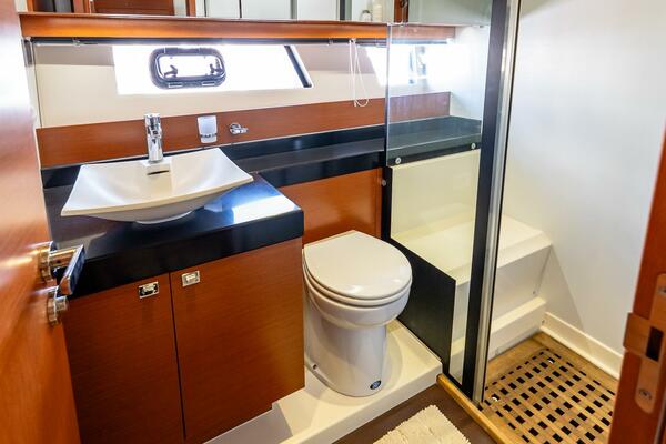 Do not miss out on this low-hour 55 Prestige "Passion Play"- you will not find a cleaner, better maintained 55. She stands out from the crowd with her beautiful gold hull and many custom decor options. Call the listing broker for best opportunity.