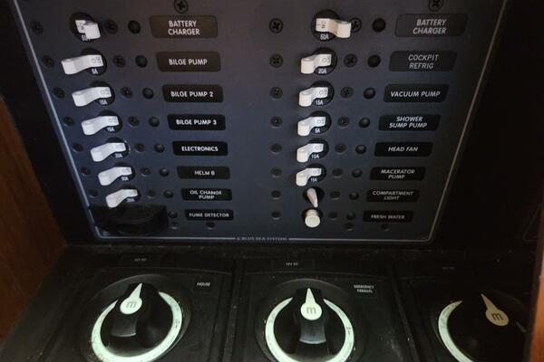 - Battery Switch - (3) Located at companionway cabin. Has Parallel w. helm controlled solenoid.