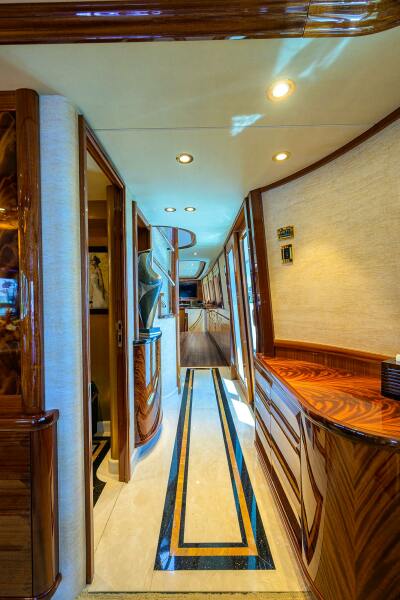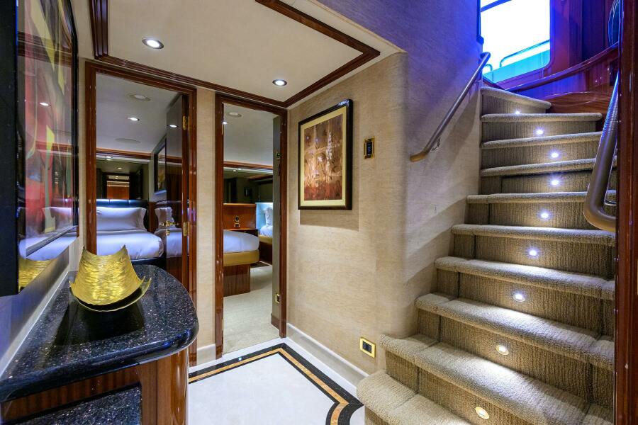 - Steps to Aft Deck: Located port and starboard with Teak C overed steps and stainless handrails
