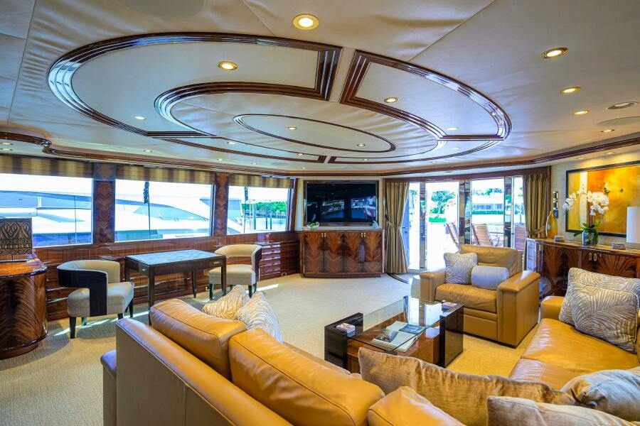 - Custom sun awning over flybridge lounge and jacuzzi (may be used underway)
