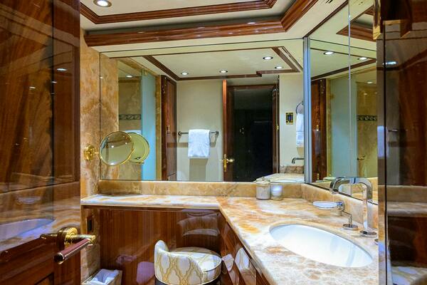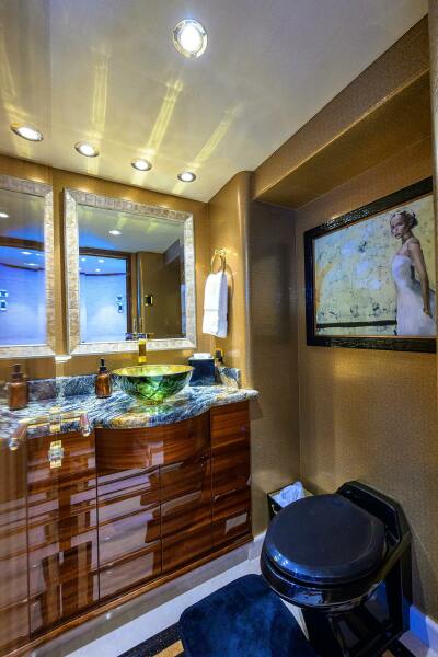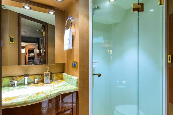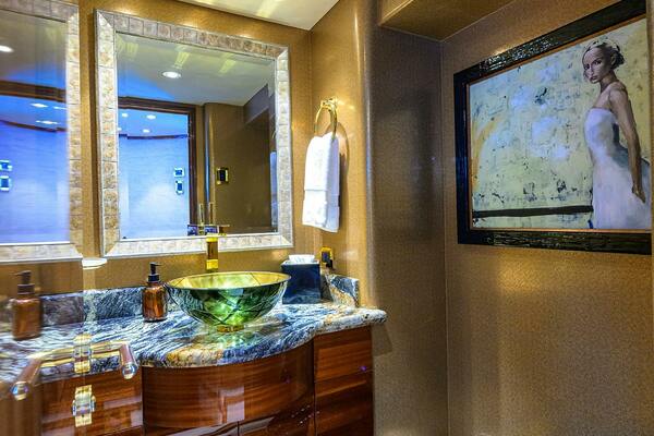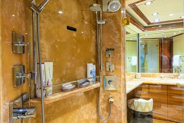 REMY ROO has the added option of entering from the normal mid ship boarding Entrance of the more casual Port and Starboard aft deck boarding gates as found on the newer Westports. Typically entering the vessel from the starboard boarding entrance, you have the ability to go forward to the galley for the ease of provisioning or aft to the salon. Entering from the vessel from the optional aft deck boarding gates on the carbon fiber Tide Ride stairs you step onto an immense aft deck with a large settee aft and a walk behind bar with an icemaker, refrigerator and sink with bar stools for casual entertaining. MAIN SALON from the aft deck area through a custom curved electric door you walk into a full beam salon with sofas and occasional chairs arranged on port. The seating has also been set out for viewing of the 60-inch TV to starboard and aft for visibility of the dock or anchorage. Privacy is provided with Fashion Tech blinds and shades which use electric motors with RTS control, all updated in August 2025The dining area in the forward portion of the salon has a large custom dining table and 8 chairs with a Port and Starboard with custom built-in storage for China, glassware and flatware. The country kitchen Galley is forward through the starboard foyer with access to the day head and stairs up to the pilothouse. There is a large glass entrance door that is dual axis to be able dogged down for sea conditions. The GALLEY is a desired Island kitchen layout to have a very bright and airy feeling with abundant storage. A large U-shaped settee to port and forward for entertaining and casual dining with a large rectangular Skylight with sliding sunshade adds to the open feeling of the galley. All counter tops have been replaced with new lighter color marble and a new matching sink. VIP STATEROOM is forward and down a few steps with a centerline walkaround queen berth and an ensuite head. The VIP has custom sidelights that enlarge the stateroom as well. All guest staterooms feature ensuite heads with a large lighted mirror vanity, storage cabinets, upgraded faucets, Headhunter toilets, and upgraded stone accents to both the counters and shower. Master and Guest accommodations are accessed from the port side of the main salon, thru a foyer. The Foyer features a large entrance door with companion picture window, a large closet with the laundry washer and dryer stack unit for the owner and guest staterooms, additional freezer drawer storage and access underneath the Pilothouse where various ship’s electrical, equipment, and audio/visual central bases are located. This entrance area has a stone sole to the staircase leading to the lower Foyer landing. There is abundant hard luggage storage underneath this staircase. MASTER and Guest Staterooms are located amid ship and accessed via a curved staircase to the lower Foyer. The Master is full beam and features a centerline king berth with gas shock assisted lift and abundant storage underneath Mahogany wood accents, overhead wood detailing and trays, and carpeted sole. The Master has a LED TV, enlarged portlights, abundant chest drawers, a companion seat, walk-in closet, and blinds, lighting, and audio/visual entertainment control are all accessed via the Crestron I-Pad tablet. The Master Stateroom has entrances port and starboard, to the his & hers full beam head. This head has dual vanities with overhead lighting, upgraded faucets on the vanities, storage cabinets, upgraded dual shower heads, custom upgraded stones on the vanity tops, sole and in the centerline shower, Headhunter heads, and linen closets. Guest Staterooms are located aft of the lower foyer and feature overhead LED lighting, enlarged port lights, and carpeted soles. The port Guest Stateroom features side by side twin berths with storage underneath, a nightstand which can be relocated and the berths joined to create a single large berth, and hanging locker. The audio/visual entertainment, and lighting are operated via the Creston I-Pad tablet. The starboard Guest Stateroom features two side by side berths with a nightstand in the center that can be relocated and both berths joined to form a large, single berth. There is storage underneath each berth accessed by drawers, and a hanging locker. The audio/visual entertainment located forward. The PILOT HOUSE features the full complement in navigational electronics; a power actuated custom Stidd helm chair, navigation desk, a large oval shaped observation lounge with table,180-degree visibility through large Pilothouse windows, a pop-up LED TV, and a staircase up through a sliding stainless door to port accessing the Flybridge. Navigation equipment has been updated FLYBRIDGE has a centerline helm (3) Stidd power actuated chairs, teak sole, factory hardtop with overhead LED lighting; a large seating area to starboard with teak table, a full bar with sink, refrigeration, icemaker, grill and bar seating to port. The Boat Deck is down a few steps aft and features a large hot tub to port, a lounge to starboard, access to staircase via a protected sliding door to starboard, and ample storage for a 15’ RIB tender with davit crane. The Foredeck of REMY ROO was redesigned to feature a large sun pad with more storage underneath. Just one side stores 8 scuba tanks as well as 8 sets of dive gear. New teak decks are being installed for the lower section of the flybridge/boat deck making an attractive seating area with tender removed. The redesigned CAPTAIN AND CREW quarters and engine room are accessed from either the aft deck to starboard, or the swim platform. This area has a laundry center with washer and dryer, sink and refrigerator, cabinets, and a large icemaker and 2 freezers. The Captain's Stateroom is located to port with a queen berth, cabinets, a hanging locker, ensuite head with shower, entertainment, and desk. The 2 CREW Staterooms are to starboard, and both have double over/under bunks, the crew staterooms share an ensuite head with show
