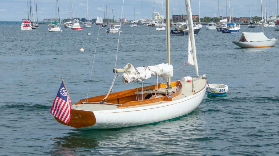 FILLY is a pristine W-22 daysailer that perfectly blends classic design with exceptional sailing performance. Crafted by Artisan Boatworks in Rockport, Maine, and designed by Joel and Steve White, she features a weighted centerboard and nearly 1,000 lbs. of lead ballast, providing remarkable stability and a shallow 22-inch draft (5′ 7″ down) for easy access to hidden coves. Her finely varnished wood, elegant joinery, and sculpted seating make her as visually striking as she is seaworthy. Ideal for day sailing, one-design racing, or simply enjoying the artistry of traditional wooden construction, FILLY offers timeless appeal for sailors who appreciate both form and function.