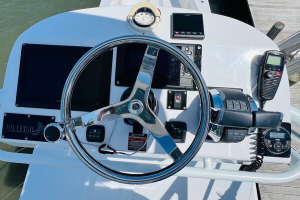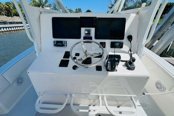 2015 Billfish 39 Custom CC boat helm with Garmin navigation system.