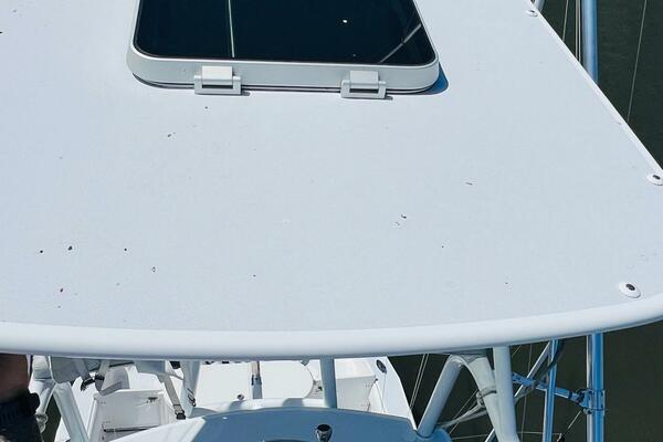 2015 Billfish 39 Custom CC boat with tower and clear blue sky.