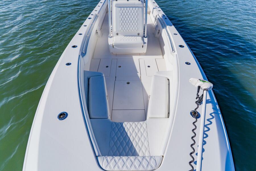 Forward bow seating with storage underneath