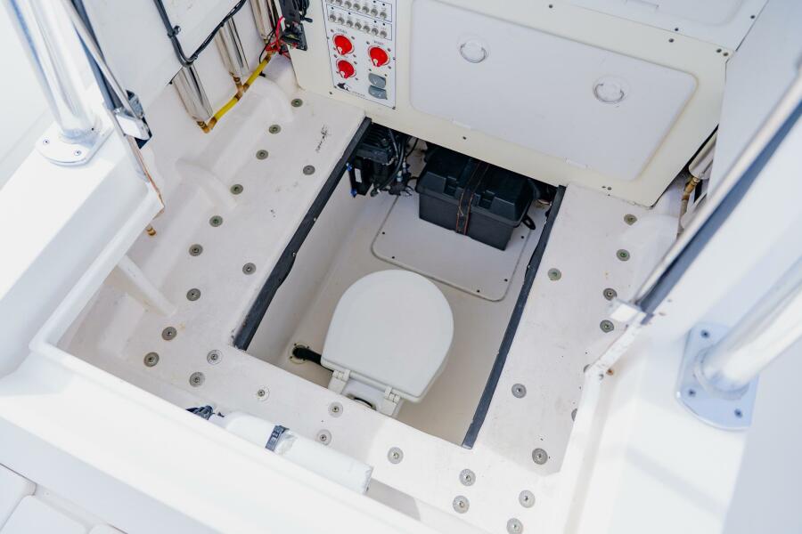Head inside console with Y-valve for direct discharge into holding tank or overboard
