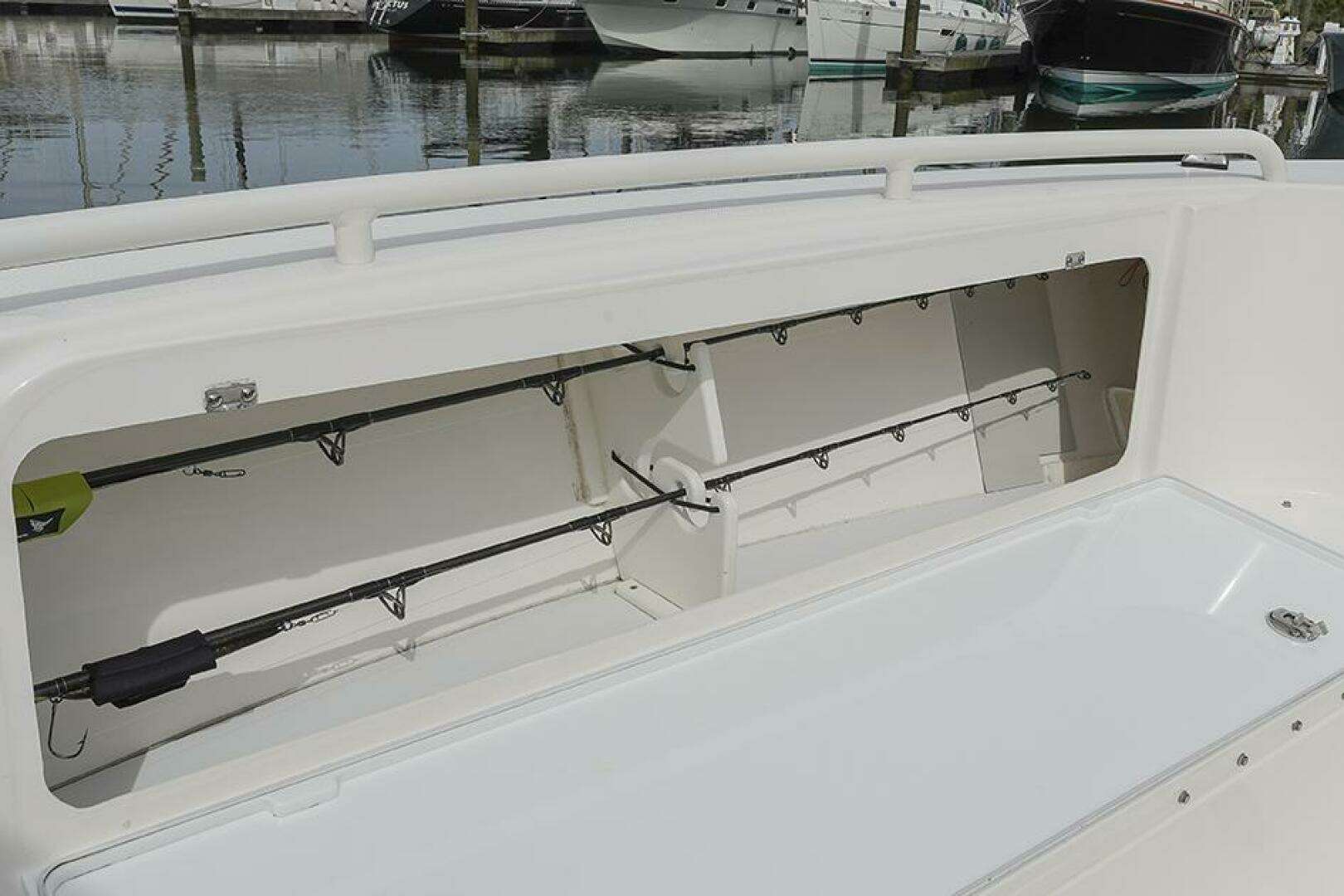 - Comfort: Cushioned seating throughout, including a forward lounge and helm seating with ample storage underneath